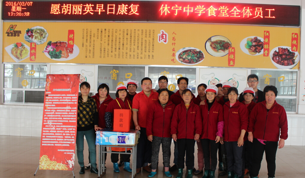 拥有健康是我们每个人的梦想。惠康公司徽师培训班食堂员工胡丽英不幸住院,被诊断为“脑瘤”,因胡丽英家境并不富裕,其丈夫因身体原因不能从事体力劳动,又有2个孩子正在上学。医疗费用缺口达10万之多。