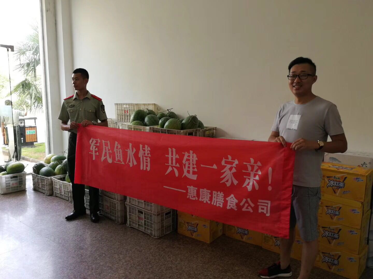 为进一步发扬拥军爱民的光荣传统,2018年8月1日上午,惠康膳食慰问组一行副总经理董昌龙的带领下,带着浓浓的拥军之情,先后来到黄山市森林武警支队、屯溪区消防支队开展拥军慰问活动,向广大官兵致以诚挚的问候和节日的祝福,并送上慰问礼品。