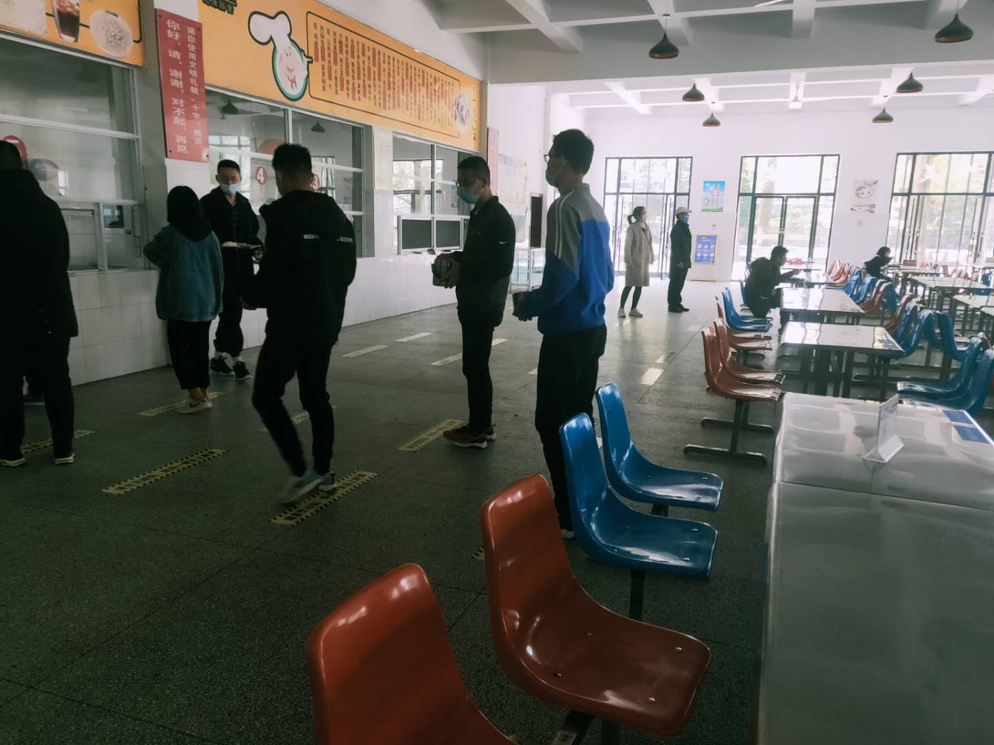 为满足高三年级学生就餐需求,我司服务的黄山一中食堂今日恢复供餐,为保障用餐安全,进入食堂须戴口罩,用餐时按年级、姓名指定就餐区域,就餐间隔大于1米,只用餐不说话。