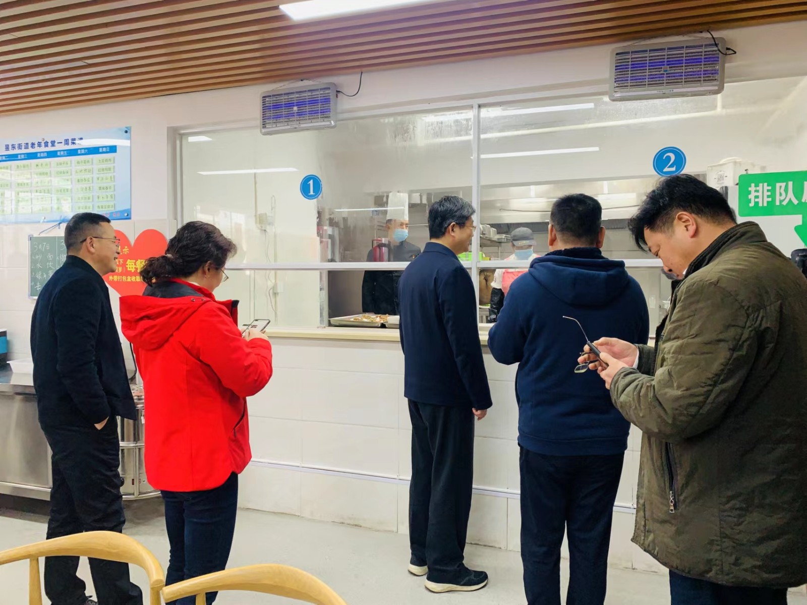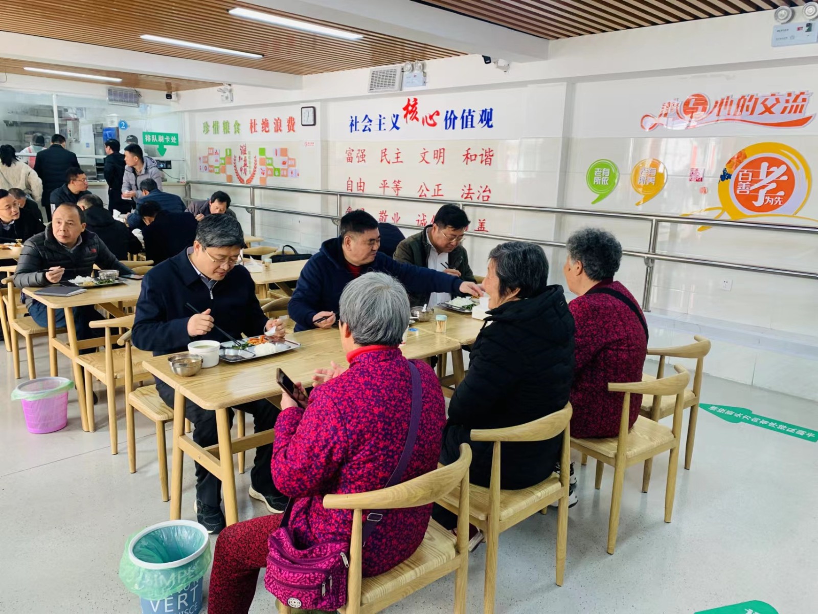 2022年3月7日,黄山市委副书记、市长孙勇深入屯溪区水心亭社区“乐欢聚”老年食堂,调研“老年食堂”运营及屯溪区养老服务工作推进情况。并在食堂扫码就餐 ,与刚吃完午饭的老人们围坐一起、询问老人们还有什么养老需求。家住荷花池新村的84岁老人李德珍高兴地说,社区食堂的饭菜可口软糯,方便又营养,每周都要来吃五六回。